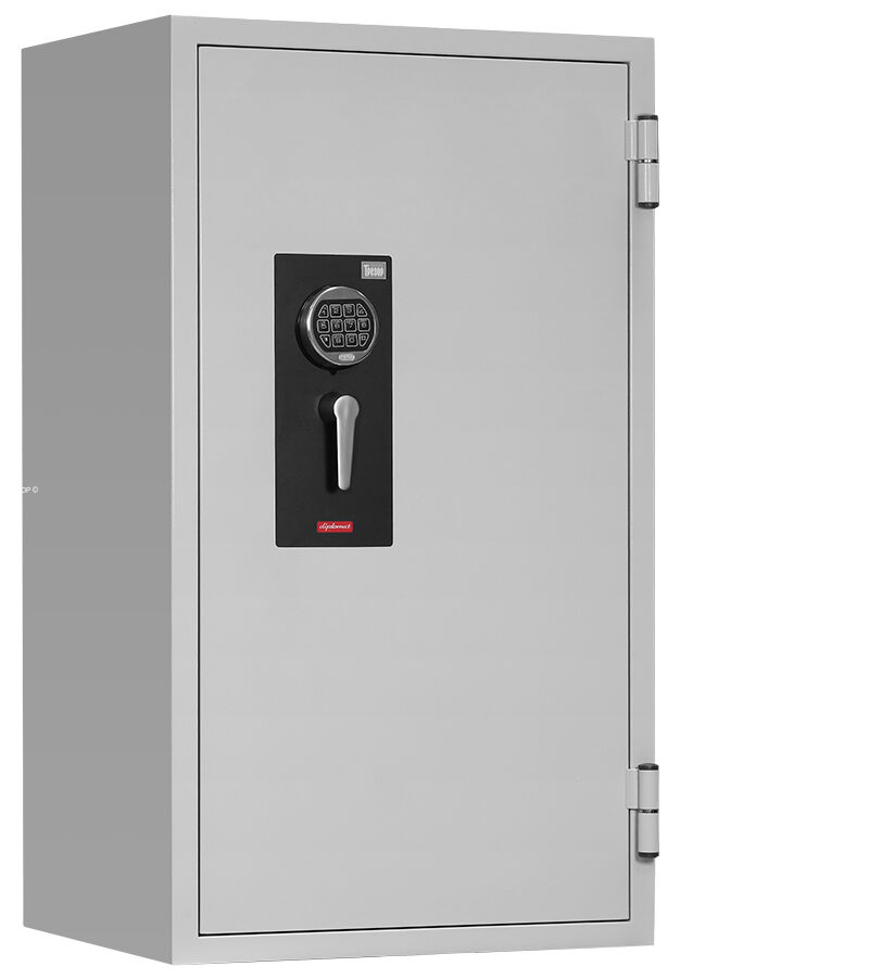 Уникальная серия сейфов Diplomat Security Safe 120: огнестойкая конструкция классического сейфа MO120 была доработана с целью увеличения безопасности. Сейфы серии Diplomat SS оснащёны креплением к полу, увеличена толщина стали, диаметр и количество ригелей. Сертифицированы на защиту от взлома - класс S1 (ГОСТ класс 0), дающий возможность страховать в Европе с базовым покрытием в 10000 евро.
